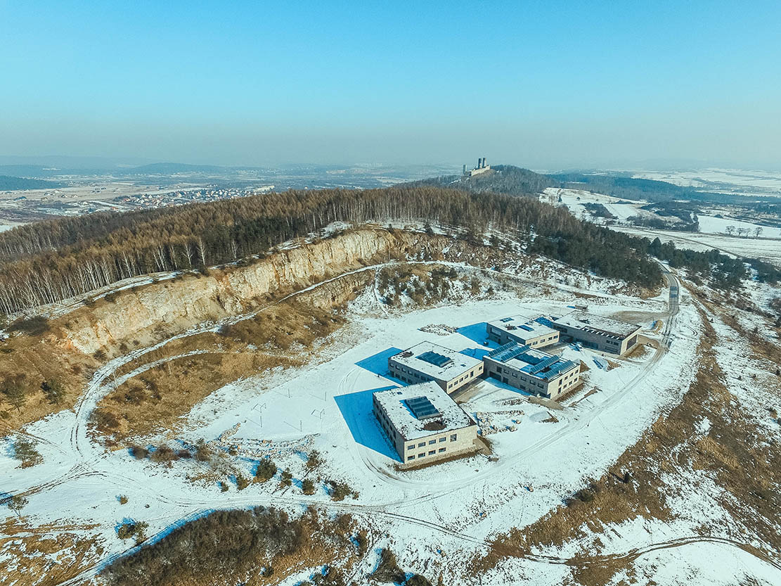 W budynku głównym (A) znajduje się osadzona w blokach skalnych sala audytoryjna dla 240 osób. W budynku laboratoryjnym-dydaktycznym (B) umieszczona jest 60-osobowa sala konferencyjna, która może zostać podzielona na trzy części. W budynku B znajdują się także pracownie dydaktyczne i sześć laboratoriów: geofizyczne; hydrogeochemiczne i hydrodynamiczne; kartowania geologicznego; komputerowe; mikroskopowe; przygotowania próbek geologicznych. W trzech pozostałych budynkach (C, D, E) utworzono 170 miejsc hotelowych dla kadry i gości ośrodka oraz studentów. Ponadto znajdują się w nich sale warsztatowe. Na terenie ośrodka funkcjonuje 50 miejsc parkingowych dla samochodów osobowych i cztery dla autokarów.